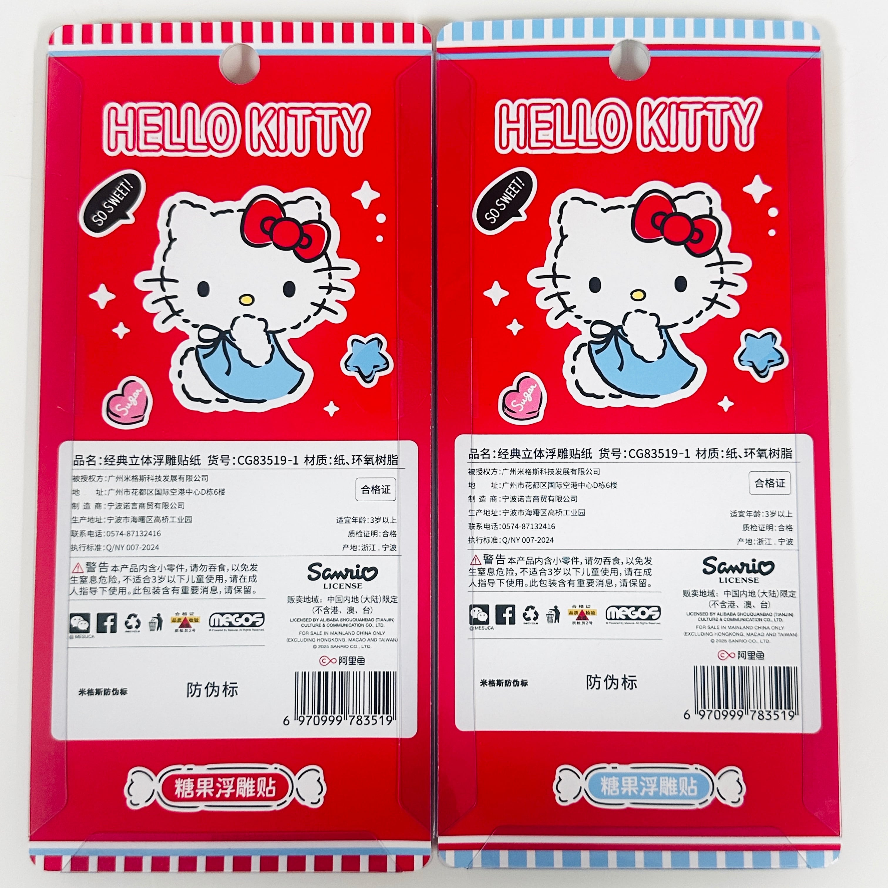 海外限定 サンリオ ハローキティ③ 公式ライセンス品 2枚セット 3D ぷっくりシール 立体 海外正規品
