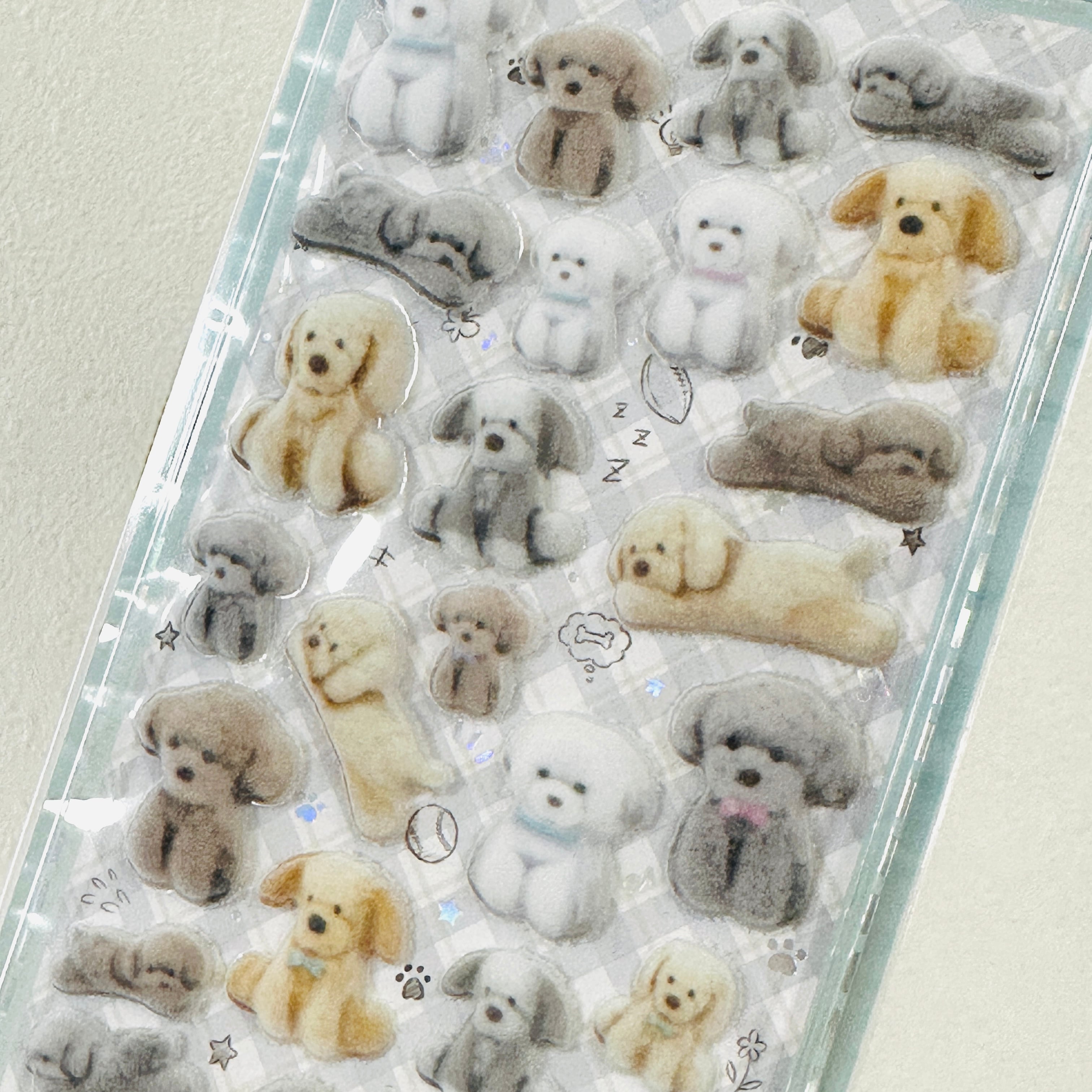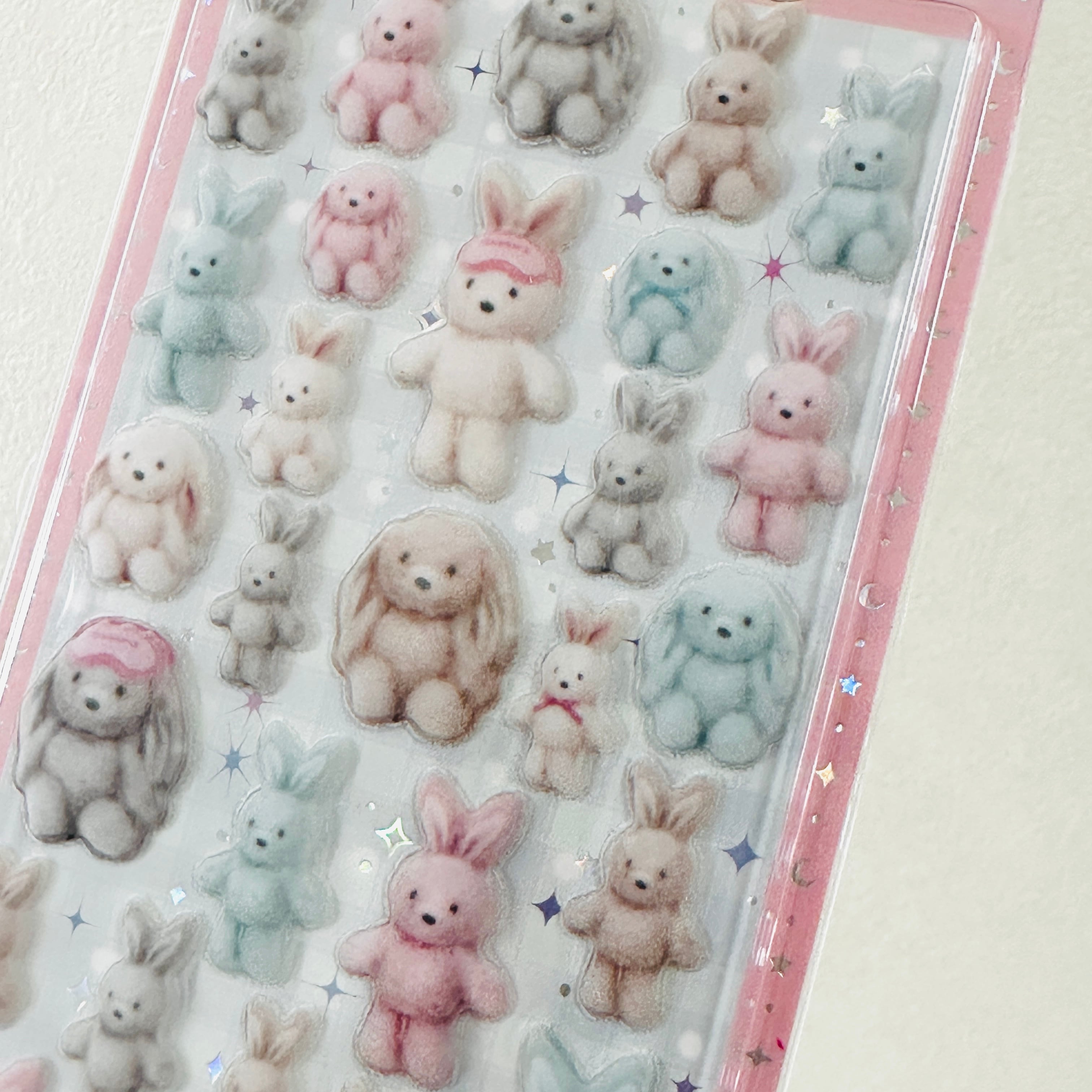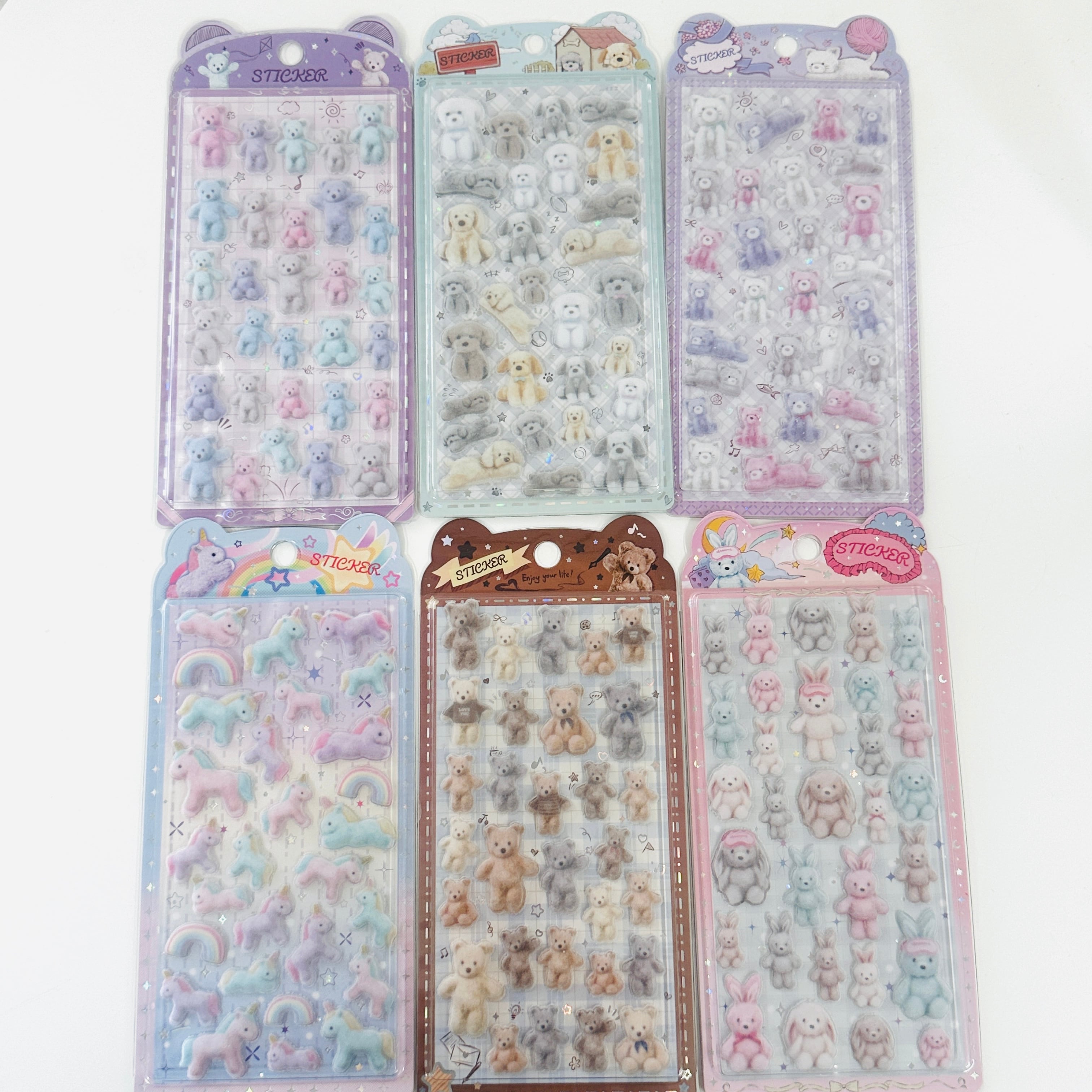 海外限定 SHANLE テディベア ユニコーン プードル ふわふわフロッキーシール 6種セット 3D ぷっくりシール 立体