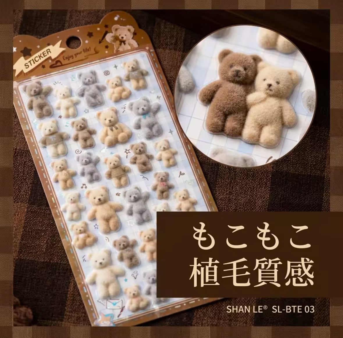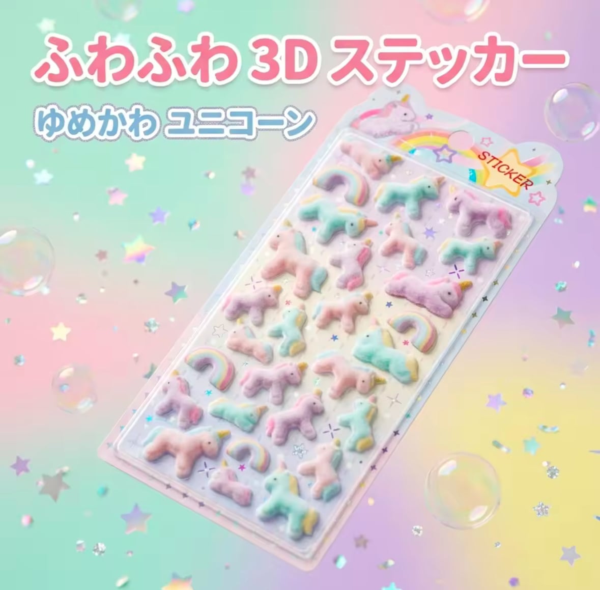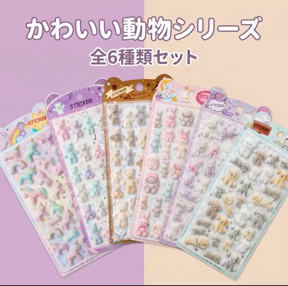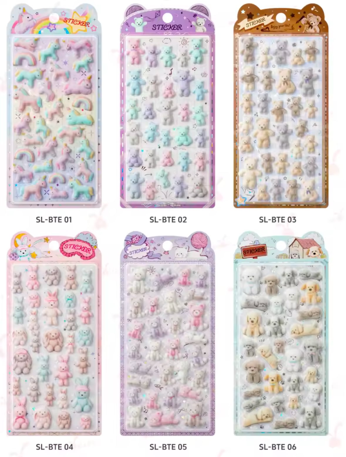 海外限定 SHANLE テディベア ユニコーン プードル ふわふわフロッキーシール 6種セット 3D ぷっくりシール 立体